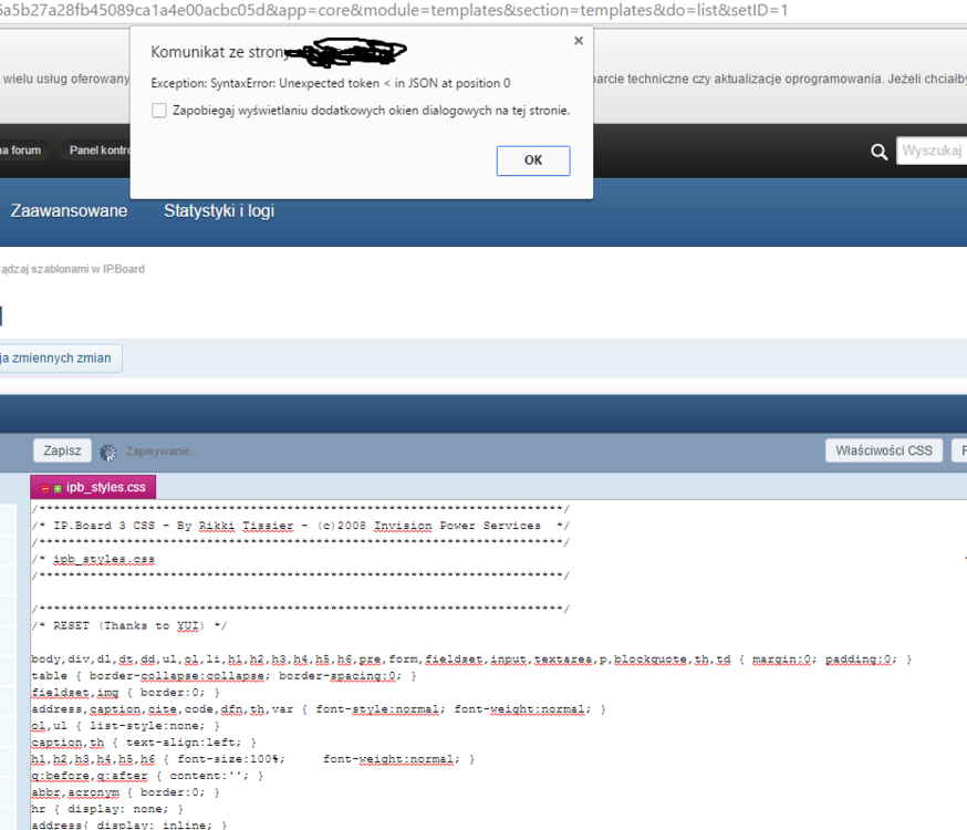 2. Witam, posiadam wlasne forum, wgralem skina, wszystko ladnie fajnie ale jak przyjdzie go edytować to nie mogę dosłownie nic zrobić. Ani w sekcji css, ani nigdzie indziej, na domyślnym skinie również mam to samo. Pojawiają mi się tam nieprzyjemne komunikaty [załącznik] Zaznaczam, iż chmody zostały poprawnie nadane etc.