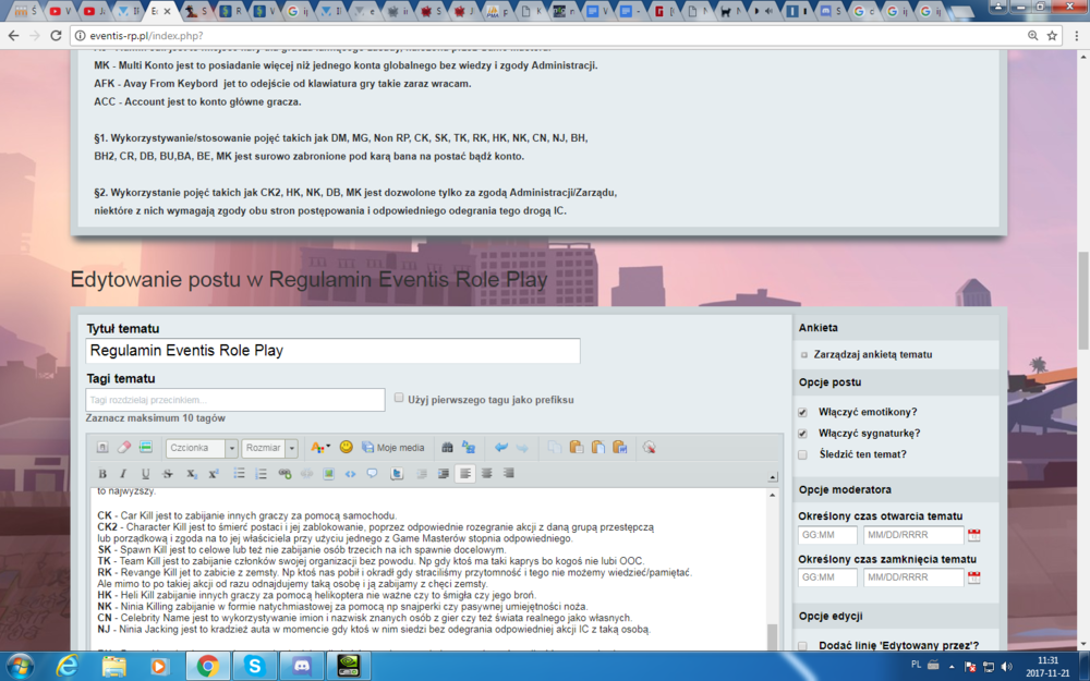 http://eventis-rp.pl/index.php?/forum/27-regulamin-serwera/ Jak na zdjęciu, jak piszę to normalnie widzę, jak dodam to wychodzi jak wychodzi wszystko pogrubione zlewa się ze sobą... -