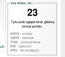 2. Witam ponownie, chciałbym umieścić na forum statystki w takiej formie jak podane na screenie. Zapewne jest to jakiś scrypt. Chciałbym je umieścić po prawej stronie nad najnowszymi tematami. Może mi ktoś pomóc jak tego dokonać i gdzie szukać takiego skryptu? A może ktoś już ma coś takiego i podzieli się swoją wiedzą na ten temat. Z góry dziękuję za okazaną mi pomoc.