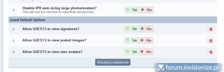 7. Witam W jaki sposób można ukryć awatary przed gośćmi, tak aby wyłącznie zalogowani widzieli awatar użytkownika? Pamiętam że w poprzednich wersjach forum była taka opcja w ACP, teraz za cholerę nie mogę tego znaleźć.