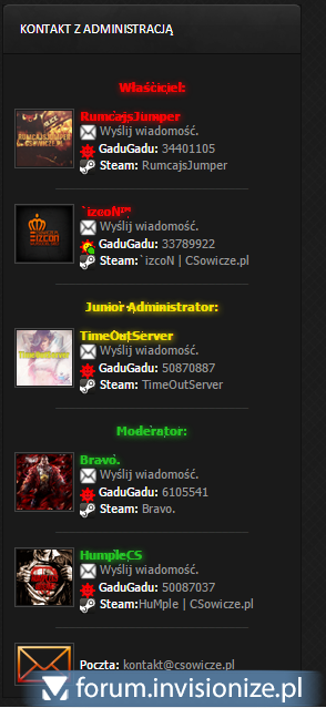 4. Witam, dziś chciałem wykonać kilka zmian w userinfopane lecz gdy chciałem wpisać tam jaką kto ma grupe. <kod> <div class="extraUserInfo"> <dl class="pairsJustified"> <li class='post_count desc lighter'> <dt><i class="fa fa-user"></i> Grupa</dt> <dd> {$this->memberData['prefix']}{$this->memberData['g_title']}{$this->memberData['suffix']}</dd> </li> </dl> Na czym polega problem? polega na tym że każdy użytkownik w temacie dostaje tą samą range na czym polega ten błąd?
