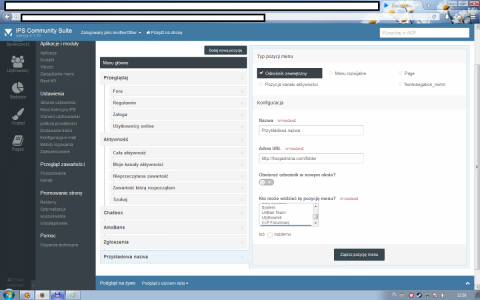 W nazwie wpisujemy preferowaną nazwę, w adres URL wpisujemy PEŁNY adres i gotowe. Możemy później zmienić kolejność paska przesuwając go (można też go 'wcisnąć' do innych pozycji), na koniec klikamy zapisz i publikuj menu .