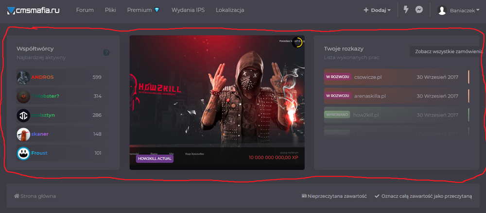 17. Zlecę wykonanie czegoś takiego Chodzi oczywiście o te pola z postami , reputacją i wygranym dniami.