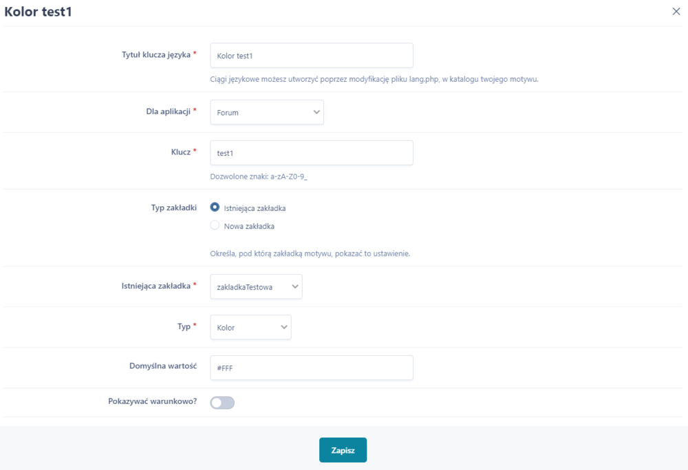 Ok kupiłem kurs troszkę ogarnę podstawy php. I patrz teraz dodałem tak w custom.css : body { background: {theme = "test1"}; } a w ustawieniach szablonu dałem tak : i niestety nie zmienia mi koloru tła, właśnie tego nie rozumiem.