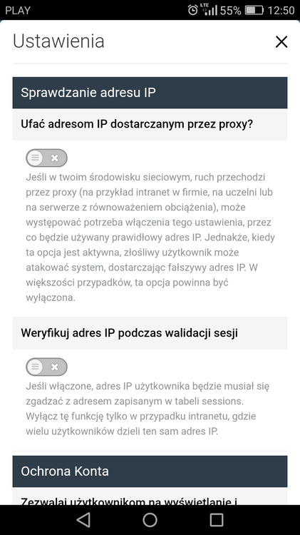 18. Witam. Nigdy nie miałem problemu logując się do ACP, nie ważne czy z telefonu w domu czy w pracy. Dzisiaj jednak się nie dało zalogować. Jak się okazało musiałem zmienić ustawienia sprawdzania IP. Nigdy tam nie grzebałem. Co się stało, że musiałem to wyłączyć. IPS sam coś włączył? Teraz mam wszystko wyłączone żeby móc się logować z tel., wcześniej było włączone to drugie ustawienie. Czy takie ustawienie można zostawić?
