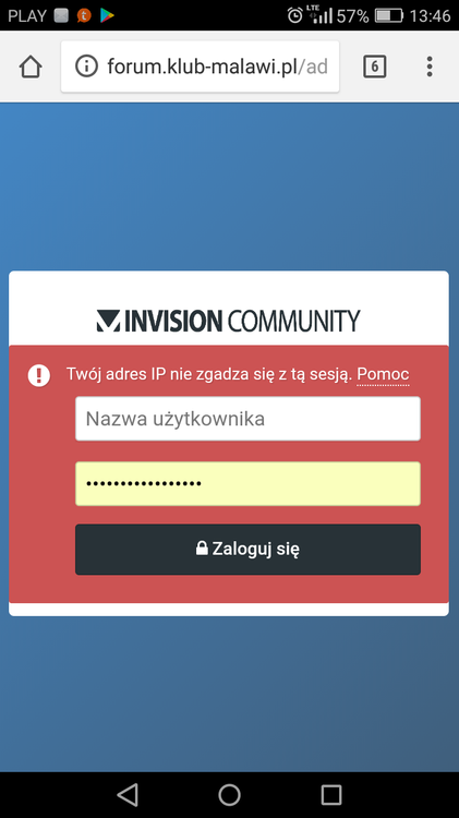 16. Nie mogę się wtedy zalogować. Tak to wygląda.