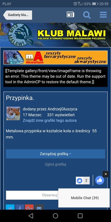 1. Witam. Po aktualizacji do 4.4.2 mamy taki oto błąd w galerii. Pozmieniałem już wszystko co było wskazane po aktualizacji. Nawet skopiowałem wszystko z imageFrame ze stylu domyślnego i dalej to samo. Poniżej zrzut z naszego skina, który jest dla wszystkich oraz zrzut z domyślnego stylu. W domyślnym w miejscu błędu jest obraz.