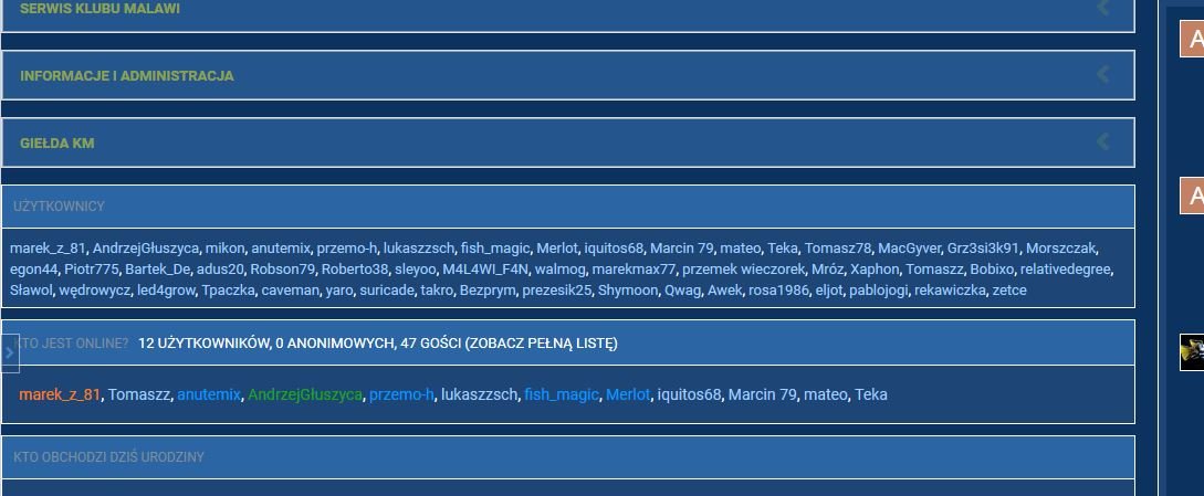 2. Witam. Mamy mamy na forum widget "Kto jest online" i "Użytkownicy". W tym drugim wyświetla 50 użytkowników ostatnio aktywnych na forum. W widgecie "Kto jest online" kolory grup wyświetlane są normalnie, w użytkownikach jest tylko j eden kolor. Da się coś dopisać żeby też było kolorowo?