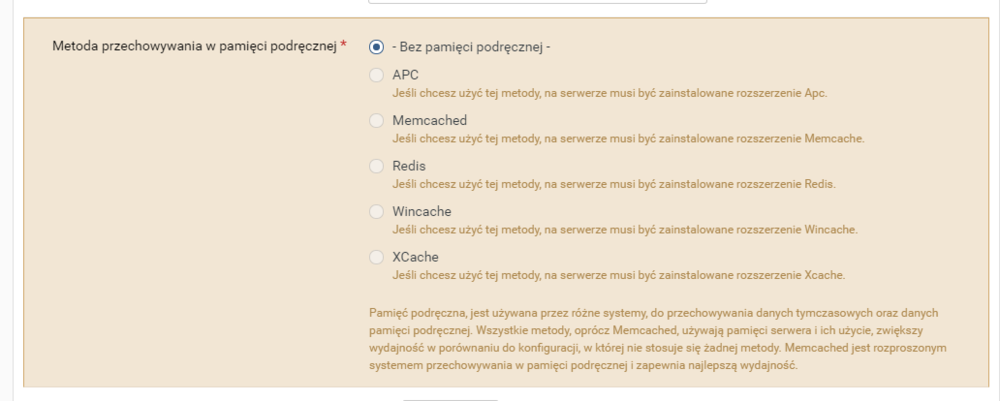 14. Nie mogę edytować tematu. Ale memcached jak i redis jest zainstalowane a nie moge wybrac: