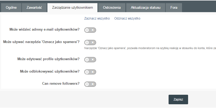 16. ACP -> Użytkownicy -> Moderatorzy -> Dodaj moderatora -> Grupa Podstawowa (Wybieram grupe) I potem zaznaczam tak jak na załącznikach: