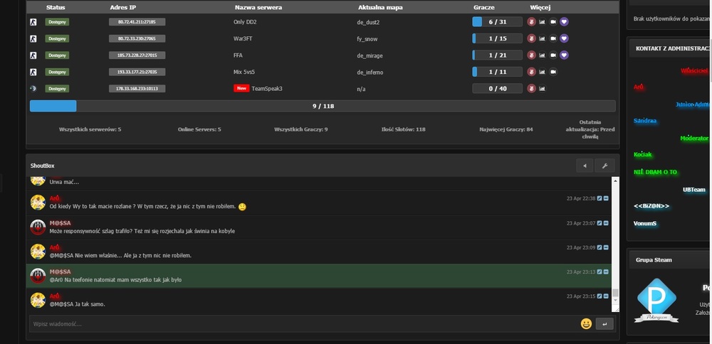To już tak jakby wygląda lepiej... Przed rejestracją widziałem screeny, temat i w ogóle. Po rejestracji wyskakuje mi coś takiego: Niestety, nie ma problemu Nie mogliśmy zlokalizować pozycję, którą próbujesz wyświetlić. Kod błędu: 2D161 / 2 Chyba, że to jest płatne, dla tego nie mogę zobaczyć. Nie wiem... Ogarniasz to ?? A , że się teraz tak głupio zapytam ... Tutaj na forum co jest wgrane ? Shoutbox, chatbox czy co ?? Bo to z forum by było chyba dobre. Sam już nie wiem ... D: