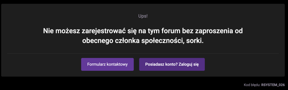 4. Ustawiłem tryb polecenia na "invite only", przekierowanie po kliknięciu w link jest na stronę rejestracji. Niestety, po kliknięciu w link z maila, zaproszeni widzą formularz logowania, a po kliknięciu "zarejestruj się" i wprowadzeniu daty urodzenia dostają komunikat błędu o braku zaproszenia. Tak samo wygląda sytuacja po podaniu linku zapraszającego
