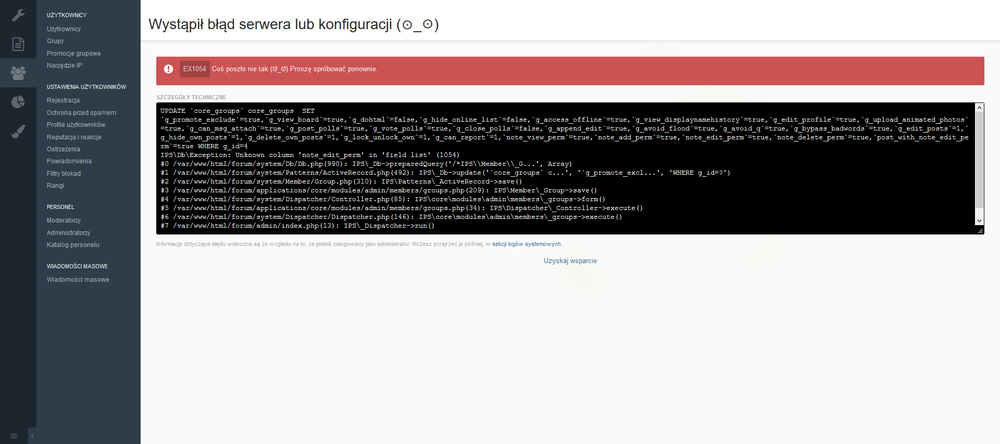 10. Witam kupilem plugin Post Notes lecz przy aktywacji w grupach wywala mi error EX1054