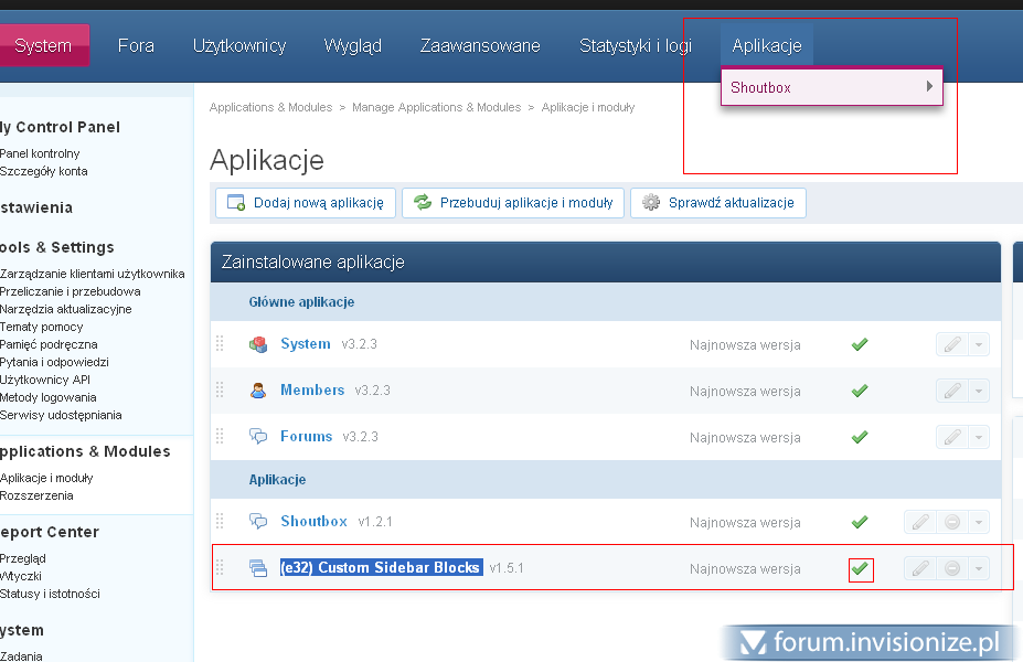 13. Witam mam taki problem od dawna nie chodzila mi ta aplikacja ale nie uzywalem juz wiec dalem spokój wczoraj skasowalem i dalem od nowa ale 0 zmian. Znów skasowalem i wgralem nowszą wersje 1.5.1 i nawet nie pojawiło sie w "Aplikacje" gorne menu (SS) juz niewiem jak to zalatwic. Cache wszystko przebudowane i nic ;p