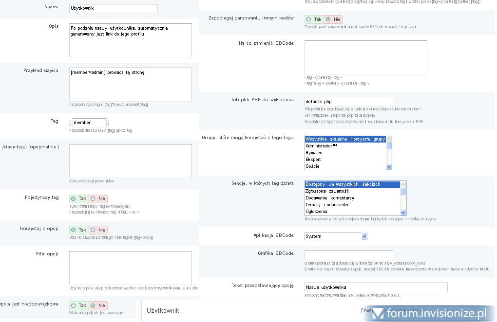 16. Dziwnie u mnie jest w innej kolejności: $existing[ $_option ] = array( 'member_id' => $member['member_id'], 'members_display_name' => $member['members_display_name'], 'members_seo_name' => $member['members_seo_name'] );<br>$this->cache->updateCacheWithoutSaving( '_tmp_bbcode_members', $existing );<br><br>if( $member['members_display_name'] )<br>{<br>$_content = $this->_buildOutput( $existing[ $_option ] ); Coś takiego
