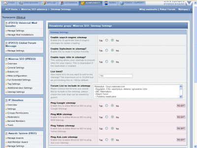Czy Ty masz napewno wersję 0.4.1? Ja w ACP mam wszystko o czym mówił DawPi Kliknij w ustawieniach Minerva na Overview, powinno być coś takiego: System Overview MinervaSEO version 0.4.1 Furl Enabled