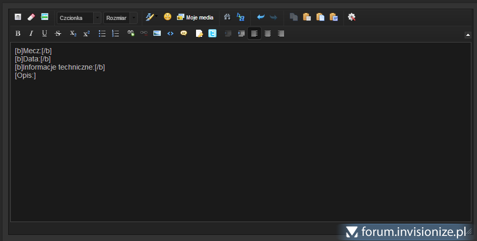 Witam, istnieje taka modyfikacja, który po kliknięciu w "napisz nowy temat" robi gotowy wzór tematu wraz z bbcode? Chodzi mi oto by nie trzeba było za każdym razem pisać wzoru tylko w odpowiednich działach pokazywał się on automatycznie. Coś takiego jak na tym zdjęciu: