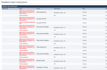 8. Tak te tematy co napisał ten użytkownik nie są widoczne tak jak by usuneło wraz z użytkownikiem a w logach moderacyjnych mam takie coś