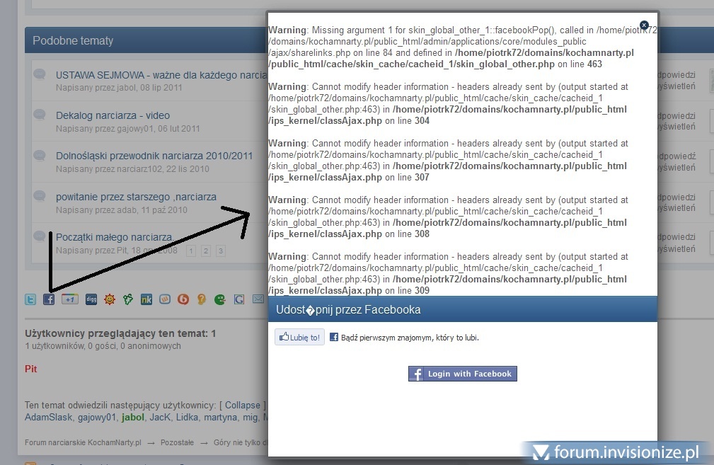 21. Witam, jak chcę dany temat udostępnić przez FB, klikam na ikonkę na dole jak na zrzucie ekranu i wyskakuje błąd. Jak go naprawić: