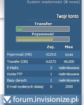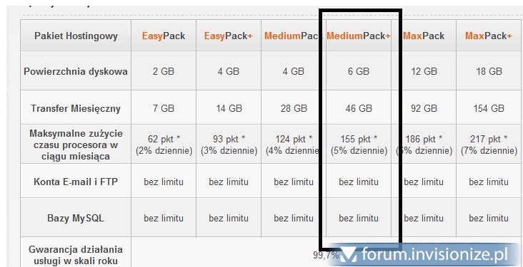 1. Witam, bardzo proszę znawców tematu o pomoc w pewnym zagadnieniu. Forum ładuje mi się coraz wolniej i zastanawiam się czy nie zmienić serwerów. Sytuacja wygląda tak że na vps się nie znam więc odpada. Aktualnie forum stoi na takim hostingu www: MediumPack+ Zużycie przerdstawia się następująco: I teraz tak: zastanawiam się czy nie zmienić oferty na coś z tego poniżej, a mianowicie: http://www.hekko.pl/...dedykowany.html Czy warto, czy zmieni się prędkość funkcjonowania forum? Czy nie ma sensu? Zastanawiam się nad opcjami: Easy HD albo Medium HD Proszę o pomoc w rozwiązaniu tego zagadnienia. Jestem w tym zielony, niestety. Wszystkie uwagi mile widziane