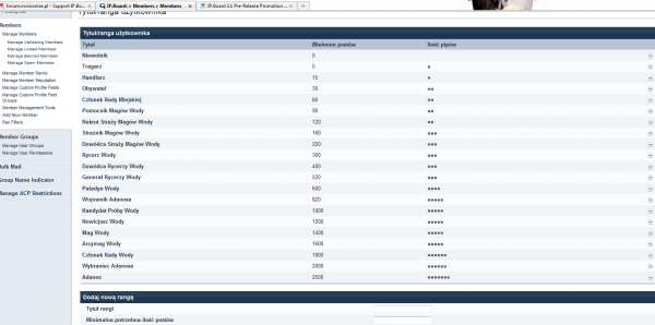 Wynika z nich, że użytkownik mający 123 posty na swoim koncie powinien mieć rangę Rekrut straży magów wody. A ma obywatel, która należy się użytkownikom z 30 postami.