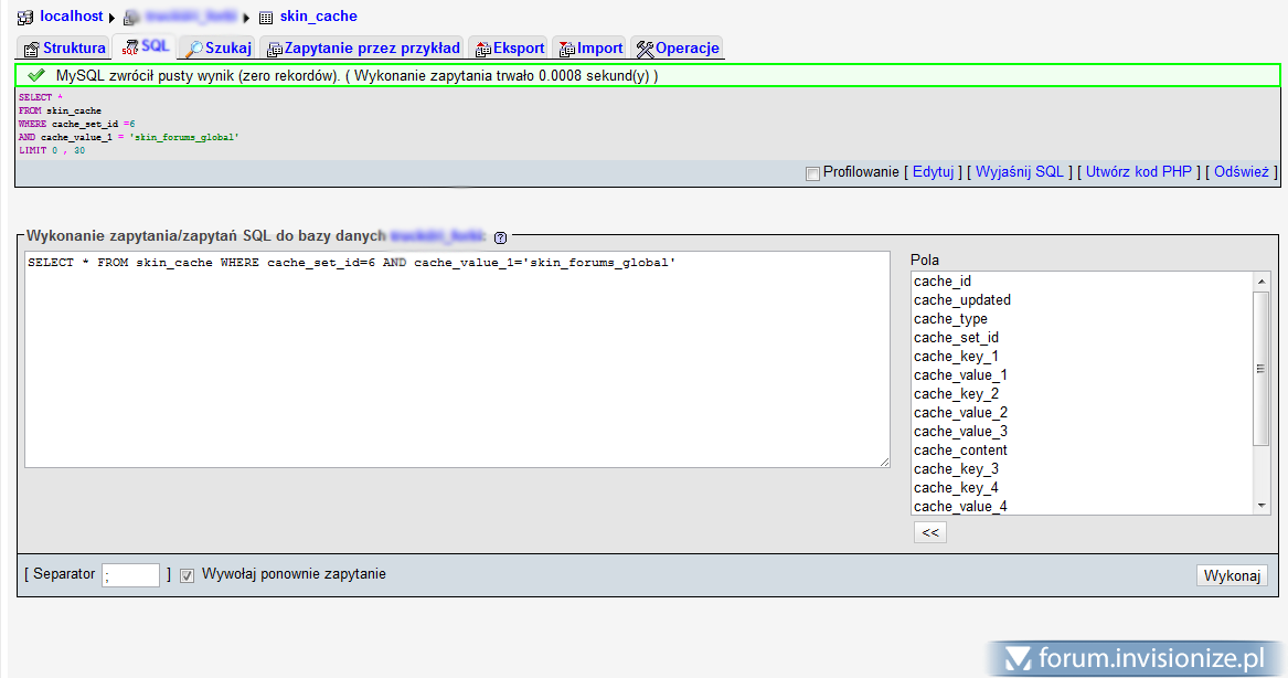 Teraz powrócił błąd mySQL query error: SELECT * FROM skin_cache WHERE cache_set_id=6 AND cache_value_1='skin_forums_global' Dzięki DawPi że się nie poddajesz