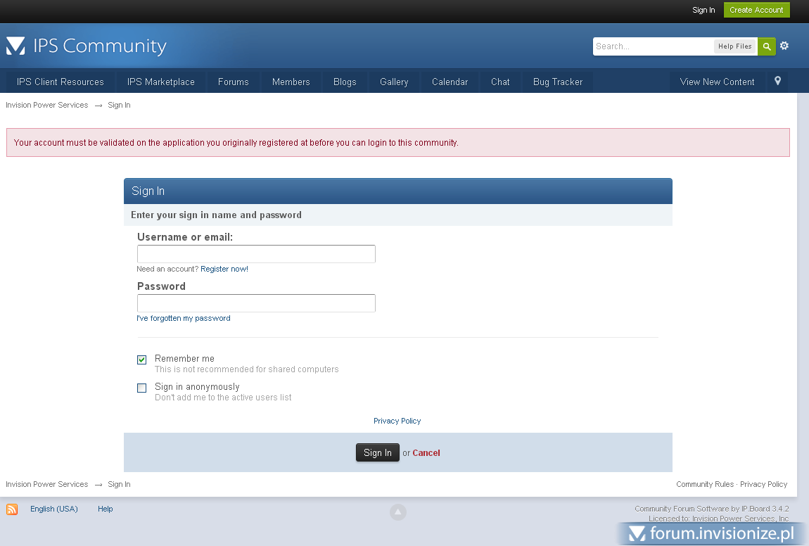 6. Dzisiaj próbując zalogować się na http://community.invisionpower.com dostaję poniższy komunikat. Renewal mam ważny do lutego 2013. Też tak macie ?