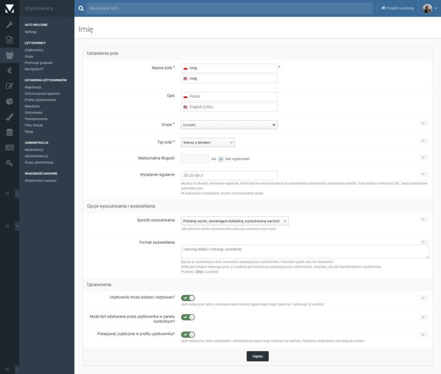 3. Cześć! Nie mogę się w panelu doszukać. Prawdopodobnie kiedyś dawno, jeszcze przy wersji 3.x coś zostało ustawione i teraz nie wiem gdzie zmienić Nowi użytkownicy są akceptowani ręcznie. W zakładce ograniczenia, mam takie ustawienia jak na printscreenie (które jest trochę dziwne). Chciałbym tak zmienić, aby każdy użytkownik mógł dodawać swój status od razu po akceptacji rejestracji.