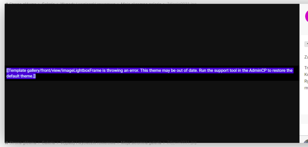 Zauważyłem, że po migracji, w niektórych miejscach forum, pojawiają się np takie errory: [[Template gallery/front/view/imageLightboxFrame is throwing an error. This theme may be out of date. Run the support tool in the AdminCP to restore the default theme.]] Nie wiem czy to ma coś wspólnego z cache/datastore i jak to naprawić. Instrukcja jest enigmatyczna. Na domyślnym skinie jest to samo. W ogóle ten fragment nawet nie był modyfikowany.