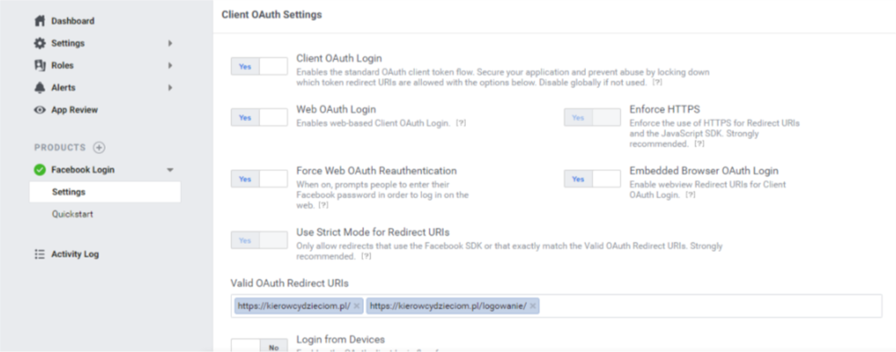 Cześć Potrzebujemy waszej pomocy. Pomogliście już w rozwiązaniu podobnego. Tworzymy w wordpresie stronę i chcemy utworzyć do niej logowanie za pomocą Facebooka. Podczas logowania wyskakuje błąd i mam problem by go rozwiązać. Czy tkwi on w ustawieniach FB czy może trzeba ustawić dodatkowo coś we wtyczce w Wordpresie Nie jesteśmy "zawodowymi" informatykami tylko samoukami