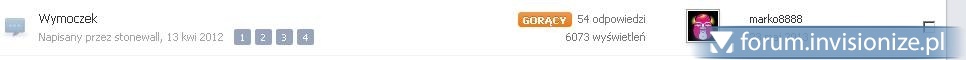 Cześć, grzebałam, grzebałam... a że ostatnio mam sporo życiowych zakrętów to przyznam szczerze, że główka nie pracuje jak powinna, do tego chyba mam jakąś deprechę i za co się nie wezmę to po chwili stwierdzam, że to i tak nie ma sensu więc przyszłam po pomoc. Support zrobił nam aktualizację forum do najnowszej wersji ze 4 dni temu. Pomijając fakt, że wcale mi się to nie podoba wizualnie (90% userów również) to stwierdzam jeszcze, że chyba nam coś spieprzyli, bo przy próbie instalacji jakiegokolwiek dodatku serwer się nakręca, load rośnie jak szalony i ... Wiadomo, nie będę kończyć zdania, bo musiałabym zakląć szpetnie. Wiem, że to co powinnam zrobić, żeby uzyskać wymarzony efekt to podmiana kilku linijek kodu w bitach skinów, ale nie chcę czegoś sp***dolić więc proszę o wskazówki. Otóz chodzi o widok listy tematów w widoku forum. W tej chwili wygląda to tak: tytuł wątku Napisany przez [user], data, ilość podstron odpowiedzi - potem jest avatar ostatniej osoby, która się wypowiedziała w wątku i za nim nick i pod spodem data A chcę: - przenieść nazwę autora wątku na środek, jak to było kiedyś - jeśli to niemożliwe to chcę zamienić avatar osoby która ostatnio wypowiedziała się w temacie na avatar autora tematu - ponadto chcę zamienić z ostatniej kolumny tabeli kolejność nazwy usera z datą ostatniego posta, żeby autor ostatniego posta był na dole a data na górze, bo obok daty chcę sobie klepnąć obrazek "new" po kliknieciu którego będzie przenosiło mnie do ostatniego nieprzeczytanego posta w temacie Ideałem byłoby jeszcze móc zamienić tą obrzydliwą pomarańczową owalną kupę z napisem gorący na jakąś ikonę, i taką samą zieloną kupę z napisem podpięty na jakąś ikonkę, i taką samą pomarańczową kupę z napisem W KOLEJCE, która sygnalizuje/pokazuje, że w danym temacie są posty do zatwierdzenia, a takich postów mamy dużo, bo mamy dużo debili na forum, albo osób, które mają włączone zatwierdzanie postów, więc prawie wszędzie mi się to wyświetla i doprowadza mnie to do szaleństwa. Jak mi ktoś pomoże i powie w których bitach zrobić zmiany i jak co z czym pozamieniać, to stawiam butelkę Jacka Danielsa i ślę pocztą pod wysłany adres w ramach podziękowań. Ach i jeszcze lista post controls, w widoku posta, pod avatarem są trzy ikony: do góry, raportuj i promuj do artykułu (IP Content) w poprzednich wersjach bez problemu i kłopotu mogłam zamienić guzik raportujący z guzikiem do góry - teraz mi to nie wychodzi. Najprawdopodobniej łapię za mało albo za dużo kodu w bicie i guzik z tego wychodzi. To jeszcze to bym właśnie chciała, jak to będę miała to będę najszczęśliwszą kobietą pod słońcem.