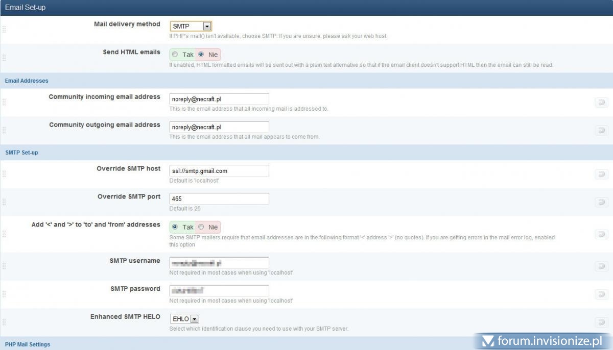 Witam mam problem otóż mój serwer pocztowy wymaga autoryzacji smtp, w ustawieniach email set-up mam wszystko poprawnie ustawione, a php mail nie mogę użyć bo maile wysyłane są tylko do tej samej domeny poczty, chciałbym wiedzieć gdzie w ipb znajduje się opcja "SMTP Authentication", proszę o szybką pomoc. A tu screen ustawień: A tu screen błędu: