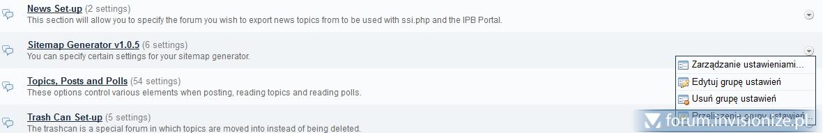 Wklej chociaż te z ustawień "Sitemap Generation :a: Settings", a jeżeli chodzi o tematy to część "IP.Board"