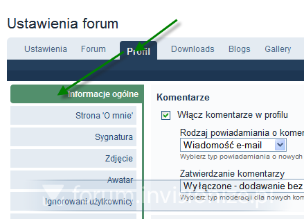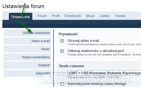 Zmiana domyślnego położenia po otwarciu ustawień profilu
