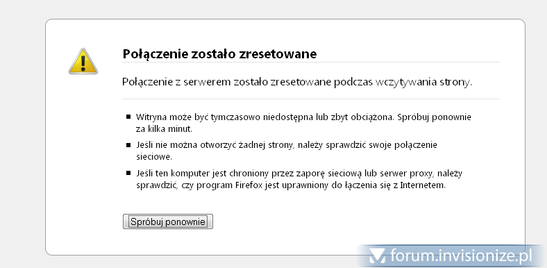 Przenieśliśmy forum na 2-gi serwer i nowe rejestracje padły. prawidłowo wypełniony formularz rejestracyjny, klik [Rejestruj] i ... [Połączenie z serwerem zostało zresetowane]