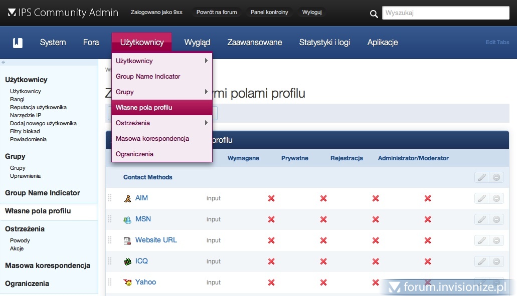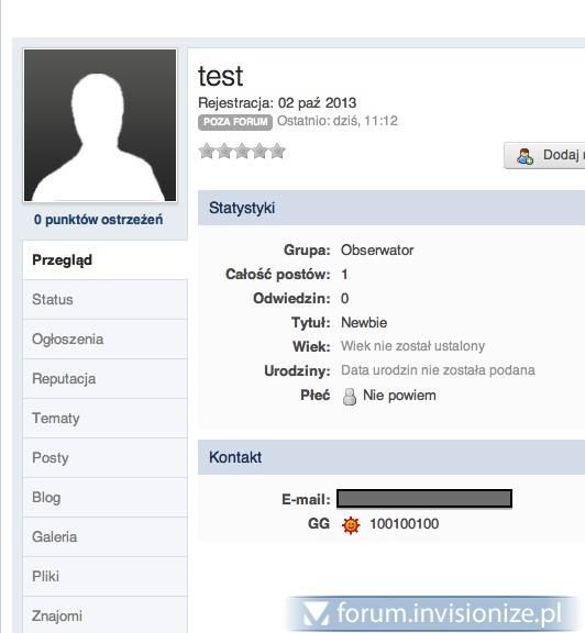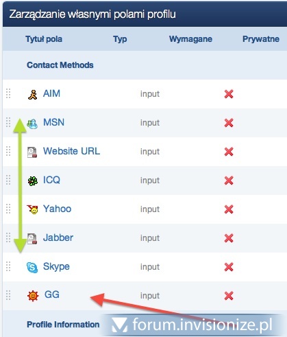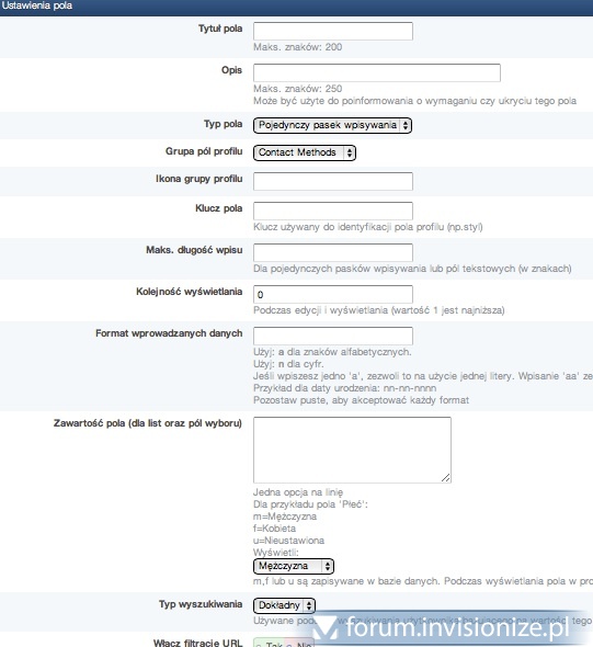 Własne pole profilu (GG) wraz z uwagami i opisem