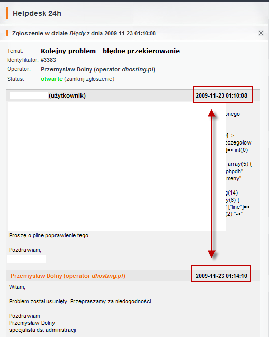 Co prawda nie ma jeszcze 3 nad ranem, ale mój problem support dH załatwił w 3 minuty i 2 sekundy: