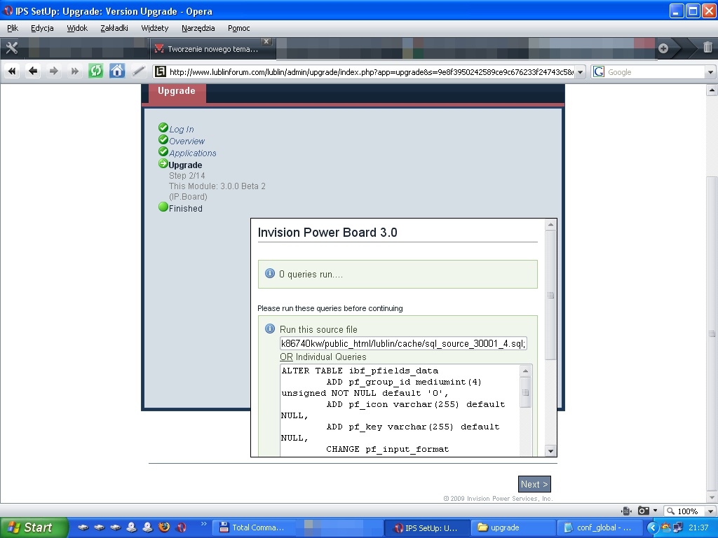 ROZWIĄZANY: Bład przy aktualizacji forum do wyższej wersji